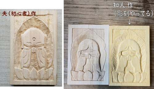 木の感触に触れながら、手のひらサイズのお地蔵さんや慈母像を彫り上げる体験講座です。